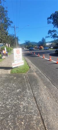 Rotary Club of Kincumber member Tony and supporter Penny collecting donations along Avoca Drive Kincumber for the Salvation Army Red Shield Appeal 2025.